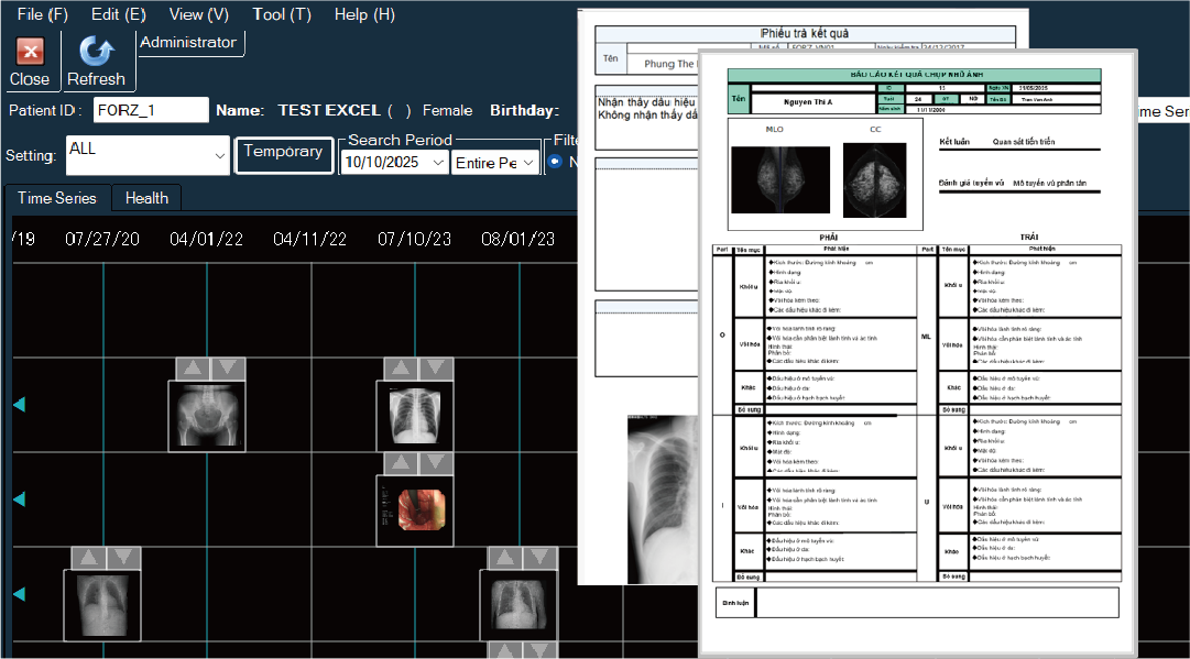 健診施設において、マルチモダリティ統合PACS、MWM・RIS、レポートシステム(全て英語版)が導入されています。